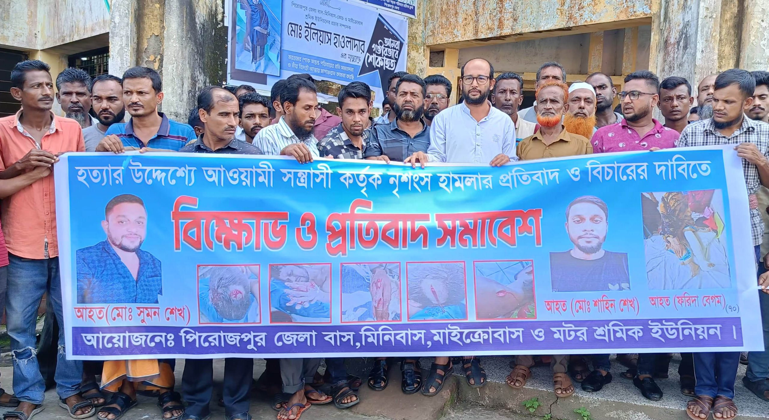 পিরোজপুর প্রতিনিধিঃ পিরোজপুরে পূর্ব শত্রুতার জের ধরে একই পরিবারের ৩ জনকে কুপিয়ে জখমের প্রতিবাদে বিক্ষোভ ও প্রতিবাদ সমাবেশ করেছে পিরোজপুর জেলা বাস, মিনিবাস, মাইক্রোবাস ও মটর শ্রমিক ইউনিয়ন। আজ রবিবার পিরোজপুর বাস টার্মিনালের সম্মুখে এ বিক্ষোভ ও প্রতিবাদ সমাবেশ অনুষ্ঠিত হয়।