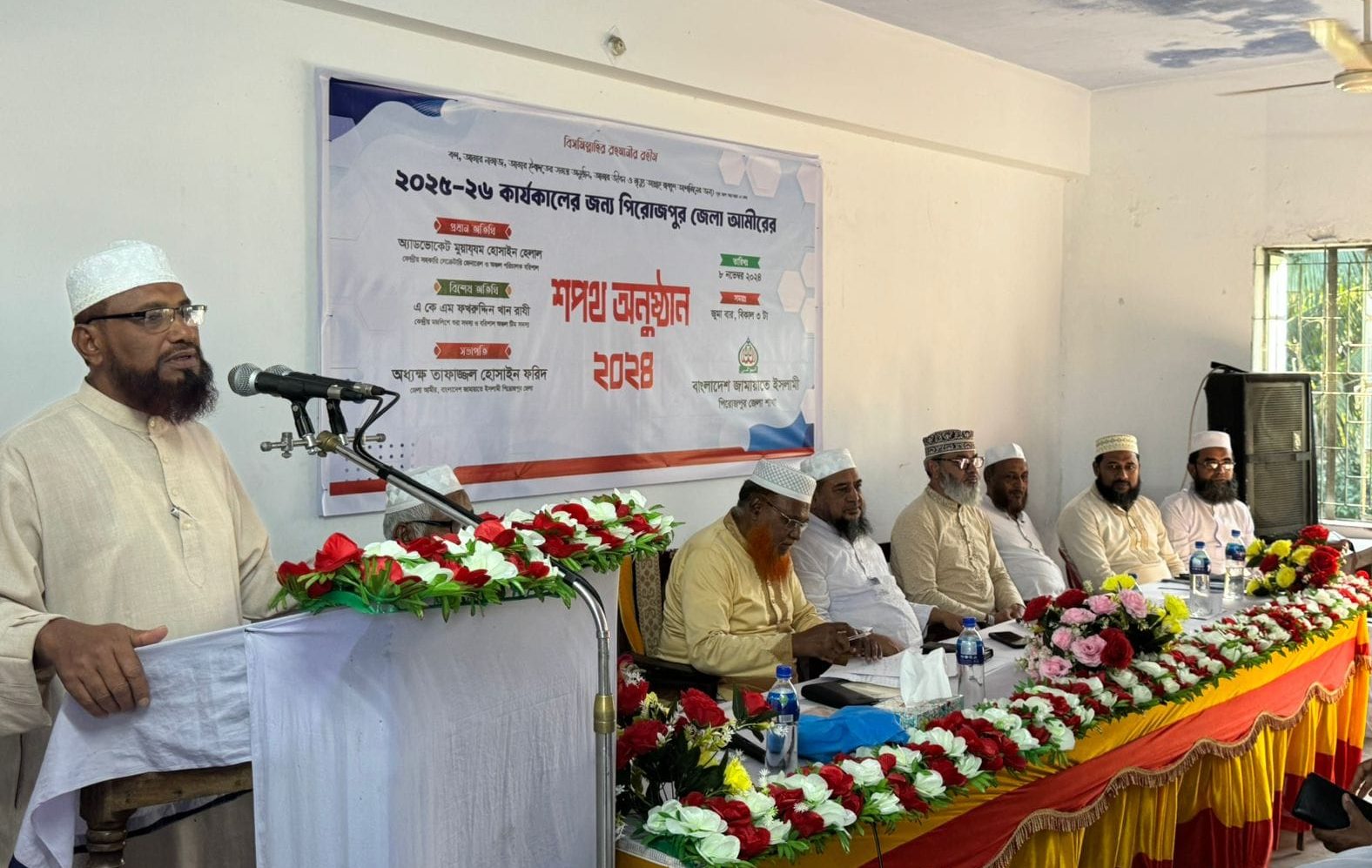 জেলা আমীর অধ্যক্ষ তাফাজ্জল হোসাইন ফরিদ এর সভাপতিত্বে এবং জেলা সেক্রেটারি অধ্যক্ষ জহিরুল হক এর সঞ্চালনায় অনুষ্ঠান পরিচালিত হয়। এতে বিশেষ অতিথি হিসেবে উপস্থিত ছিলেন অঞ্চল টিম সদস্য ফখরুদ্দিন খান রাযী, আরো উপস্থিত ছিলেন বরিশাল মহানগরী সেক্রেটারি মাওলানা মতিউর রহমান, জামায়াত মনোনীত সংসদীয় আসন পিরোজপুর-১ এর সংসদ সদস্য প্রার্থী আলহাজ্ব মাসুদ সাঈদী প্রমুখ।