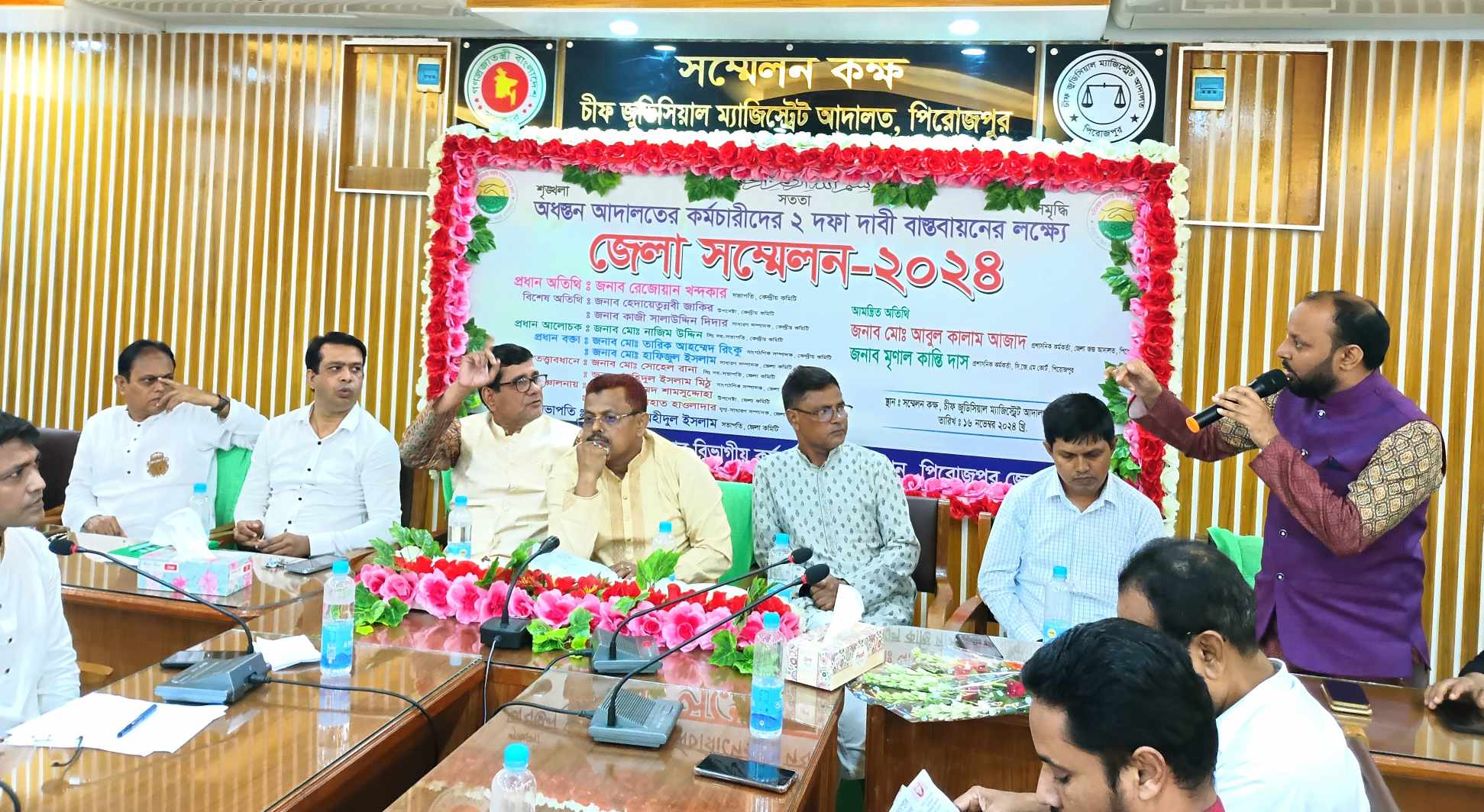 পিরোজপুর প্রতিনিধি : অধস্তন আদালতের কর্মচারীদের ২ দফা দাবী বাস্তবায়নের লক্ষে বাংলাদেশ বিচার বিভাগীয় কর্মচারী এসোসিয়েশনের আয়োজনে পিরোজপুরে জেলা সম্মেলন অনুষ্ঠিত হয়েছে। শনিবার (১৬ নভেম্বর) দুপুরে চীফ জুডিশিয়াল ম্যাজিস্ট্রেট আদালত সম্মেলন কক্ষে অনুষ্ঠিত সম্মেলনে প্রধান অতিথি হিসেবে বক্তব্য রাখেন বাংলাদেশ বিচার বিভাগীয় কর্মচারী এসোসিয়েশনের সভাপতি রেজোয়ান খন্দকার। বাংলাদেশ বিচার বিভাগীয় কর্মচারী এসোসিয়েশন পিরোজপুর জেলা শাখার সভাপতি মো: অহীদুল ইসলাম এর সভাপতিত্বে বিশেষ অতিথি হিসেবে বক্তব্য রাখেন কেন্দ্রিয় কমিটির উপদেষ্টা হেদায়েতুন্নবী জাকির, কেন্দ্রিয় কমিটির সাধারণ সম্পাদক কাজী সালাউদ্দিন দিদার, প্রধান আলোচক কেন্দ্রিয় কমিটির সিনিয়র সহ সভাপতি মোঃ নাজিম উদ্দিন, প্রধান বক্তা হিসেবে বক্তব্য রাখেন কেন্দ্রী কমিটির সাংগঠনিক সম্পাদক মোঃ তারিক আহম্মেদ রিংকু, জেলা কমিটির সাধারণ সম্পাদক মো: হাফিজুল ইসলাম, এছাড়াও বক্তব্য রাখেন প্রশাসনিক কর্মকর্তা মোঃ আবুল কালাম আজাদ, প্রশাসনিক কর্মকর্তা মৃণাল কান্তি দাস, জেলা কমিটির সিনিয়র সহ-সভাপতি সোহেল রানা, সাংগঠনিক সম্পাদক জাহিদুল ইসলাম মিঠু। অনুষ্ঠান সঞ্চালনা করেন জেলা কমিটির উপদেষ্ঠা মোহাম্মদ শামসুদ্দোহা।