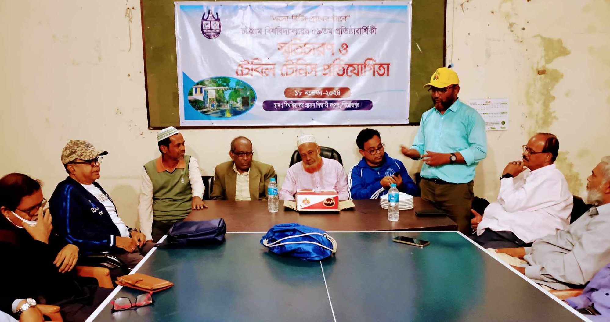 পিরোজপুর প্রতিনিধি:- “এসো মিলি প্রাণের টানে” এই স্লোগানকে সামনে রেখে চট্টগ্রাম বিশ্ববিদ্যালয়ের ৫৯তম প্রতিষ্ঠা বার্ষিকী উপলক্ষে স্মৃতিচারণ ও টেবিল টেনিস প্রতিযোগিতা ২০২৪ এর শুভ উদ্বোধন সোমবার (১৮ নভেম্বর) পিরোজপুর বিশ্ববিদ্যালয় ক্লাব অডিটোরিয়ামে অনুষ্ঠিত হয়েছে। উদ্বোধনী অনুষ্ঠানে স্মৃতিচারন করেন ১৮ তম ব্যাচের প্রফেসর আব্দুল জলিল আকন, সুজনের জেলা সম্পাদক শাহ আলম শেখ, ২০তম ব্যাচের চাকসুর মিলনায়তন সম্পাদক ও ক্লাবের সাধারন সম্পাদক মইনুল আহসান মুন্না, ২২তম ব্যাচের সরকারি মহিলা কলেজের অধ্যক্ষ শেখ মো রফিকুল ইসলাম, ৩৯ তম ব্যাচের প্রভাষক মোঃ হাবিবুল্লাহ হাওলাদার প্রমুখ। অতিথি হিসেবে উপস্থিত ছিলেন..এ্যাড আহসানুল কবির বাদল, জিপি সৈয়দ সাব্বির আহমেদ, আফজাল হুসাইন লাভলু, ডাঃ এস দাস ও কৃষিব্যাংক এর সাবেক ডিজিএম মো ফিরোজ খান। সকলে উপস্থিত থেকে বক্তব্য প্রদান করেন। টেবিল টেনিস প্রতিযোগিতায় মোট ৬.টি দল দুই ভাগে বিভক্ত হয়ে দ্বৈত প্রতিযোগিতায় অংশগ্রহণ করেন। মাঝে ছিল কেক কাটা ও আব্দুল আলীম এর গান পরিবেশন উল্লেখযোগ্য ।