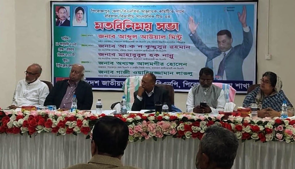 পিরোজপুর জেলা বিএনপি’র আহবায়ক অধ্যক্ষ মোঃ আলমগীর হোসেন এর সভাপতিত্বে এবং সদস্য সচিব গাজী ওয়াহিদুজ্জামান লাভলু এর সঞ্চালনায় অনুষ্ঠিত এ সভায় বিশেষ অতিথি হিসেবে উপস্থিত ছিলেন বরিশাল বিভাগের সহ-সাংগঠনিক সম্পাদক আ ক ন কুদ্দুসুর রহমান এবং মাহাবুবুল হক নান্নু।