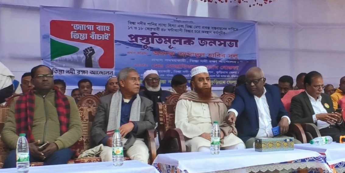 বক্তারা আরও অভিযোগ করেন যে বিগত সরকার ভারতের প্রতি নতজানু নীতির কারণে তিস্তা নদীর পানির ন্যায্য হিস্যা নিশ্চিত করতে ব্যর্থ হয়েছে। এ অবস্থায় তিস্তা মহাপরিকল্পনা বাস্তবায়ন অত্যন্ত জরুরি। এ লক্ষ্যে আগামী ১৭ ও ১৮ ফেব্রুয়ারি তিস্তার চরে ৪৮ ঘণ্টাব্যাপী অবস্থান কর্মসূচি পালনের ঘোষণা দেওয়া হয়।