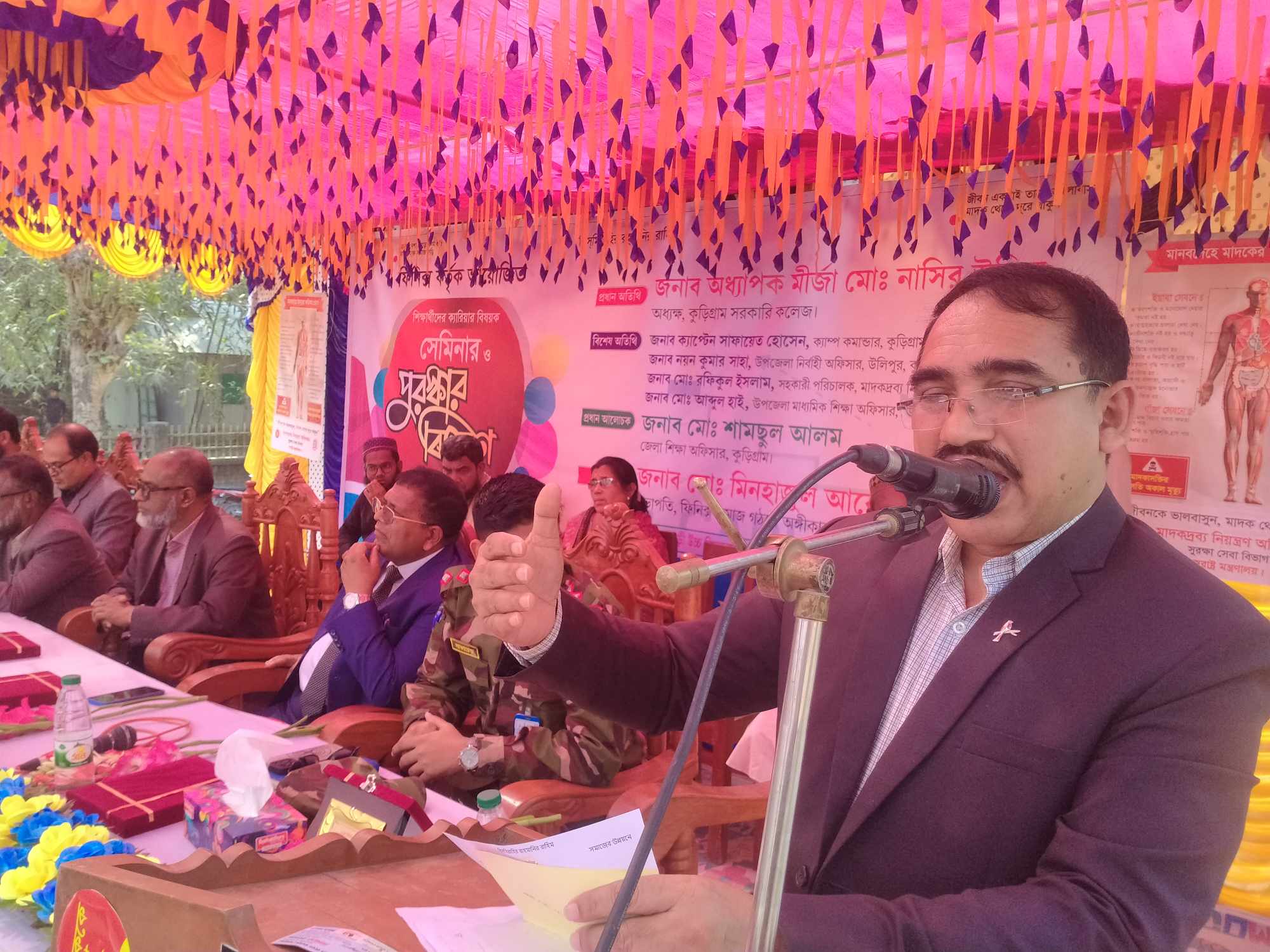 জাকারিয়া শেখ, কুড়িগ্রাম প্রতিনিধিঃ ১৯ ফেব্রুয়ারি ২০২৫ ‘এসো নেশা ছেড়ে কলম ধরি, মাদকমুক্ত সমাজ গড়ি’ – এই স্লোগানকে সামনে রেখে কুড়িগ্রামের উলিপুরে শিক্ষার্থীদের জন্য ক্যারিয়ার বিষয়ক সেমিনার ও পুরস্কার বিতরণী অনুষ্ঠান অনুষ্ঠিত হয়েছে। বুধবার (১৯ ফেব্রুয়ারি) দুপুরে উপজেলার বুড়াবুড়ি ইউনিয়নে সমাজ গঠনে অঙ্গীকারবদ্ধ সামাজিক স্বেচ্ছাসেবী সংগঠন ‘ফিনিক্স’-এর উদ্যোগে বুড়াবুড়ী উচ্চ বিদ্যালয়ের মাঠে এ সেমিনার অনুষ্ঠিত হয়। এতে ওই ইউনিয়নের বিভিন্ন শিক্ষা প্রতিষ্ঠানের শিক্ষার্থীরা অংশগ্রহণ করে।