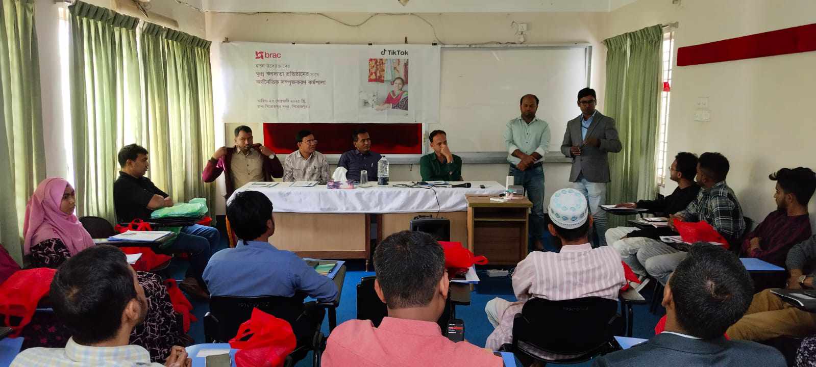 কর্মশালা পরিচালনা করেন ব্র্যাক এর জেলা ব্যবস্থাপক মোঃ ইসমাইল হোসেন। এ সময় প্রগতি এর এরিয়া ম্যানেজার বাবলু মন্ডল, ব্র্যাকের উপজেলা হিসাব রক্ষক মোঃ জাহাঙ্গীর আলম, ম্যানেজার (দাবি) কিরন চন্দ্র পান্ডে, ব্র্যাকের সেক্টর স্পেশালিস্ট মোঃ আব্দুল জলিল সহ বিভিন্ন এনজিও প্রতিনিধি এবং নতুন উদ্যোক্তারা উপস্থিত ছিলেন।