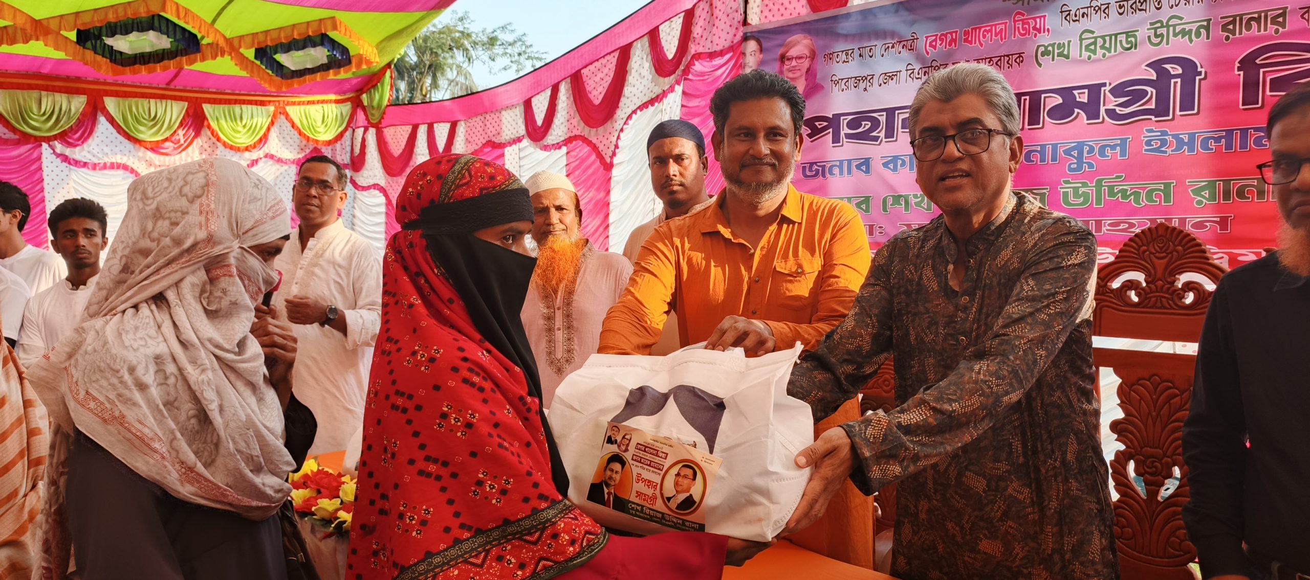পিরোজপুর প্রতিনিধি : দেশনেত্রী বেগম খালেদা জিয়া ও তারেক রহমানের পক্ষ থেকে শেখ রিয়াজ উদ্দিন রানার ব্যক্তি উদ্যোগে রমজানের উপহার সামগ্রী বিতরণ করা হয়েছে। আজ মঙ্গলবার বিকেলে পুরাতন বাস স্ট্যান্ড সংলগ্ন বালুর মাঠে সহস্রাধিক মানুষের মাঝে উপহার সামগ্রী বিতরন করা হয়। অনুষ্ঠানে প্রধান অতিথি হিসেবে উপস্থিত ছিলেন, জাতীয়তাবাদী দল বিএনপির কেন্দ্রীয় সহ বন ও পরিবেশ বিষয়ক সম্পাদক কাজী রওনাকুল ইসলাম টিপু। অনুষ্ঠানে বিশেষ অতিথি হিসেবে উপস্থিত ছিলেন পিরোজপুর জেলা বিএনপির যুগ্ম আহ্বায়ক শেখ রিয়াজ উদ্দিন রানা, জেলা বিএনপির আহবায়ক কমিটির সদস্য মো: জাকির হোসেন রোকন, আব্দুস সালাম।