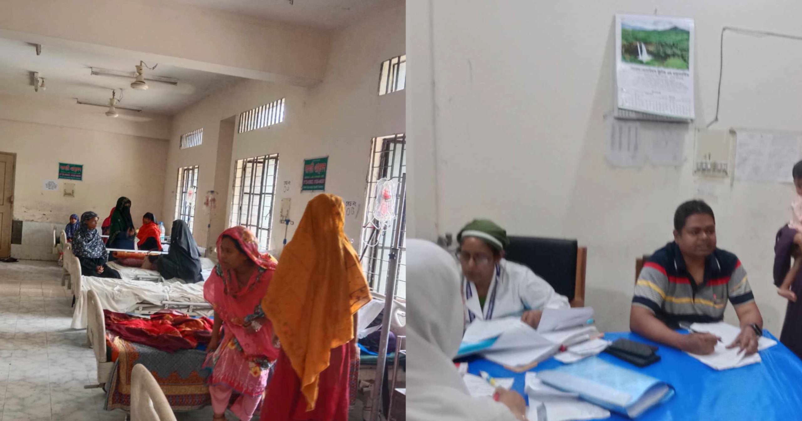 হাসপাতালে গিয়ে দেখা যায় বেশ কয়েকজন ডায়রিয়ার রোগী ভর্তি হয়েছেন, উপজেলা স্বাস্থ্য ও পরিবার পরিকল্পনা ডাঃ ননী গোপাল রায় নিজেই ওয়ার্ডে গিয়ে রোগী দেখেছেন।